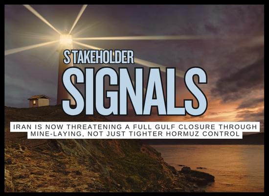 The escalation signal is that the risk map has widened. This is no longer only about who gets through Hormuz and under what political conditions. The threat now reaches the whole Gulf operating system, with mine warfare being presented as the mechanism for broader denial.